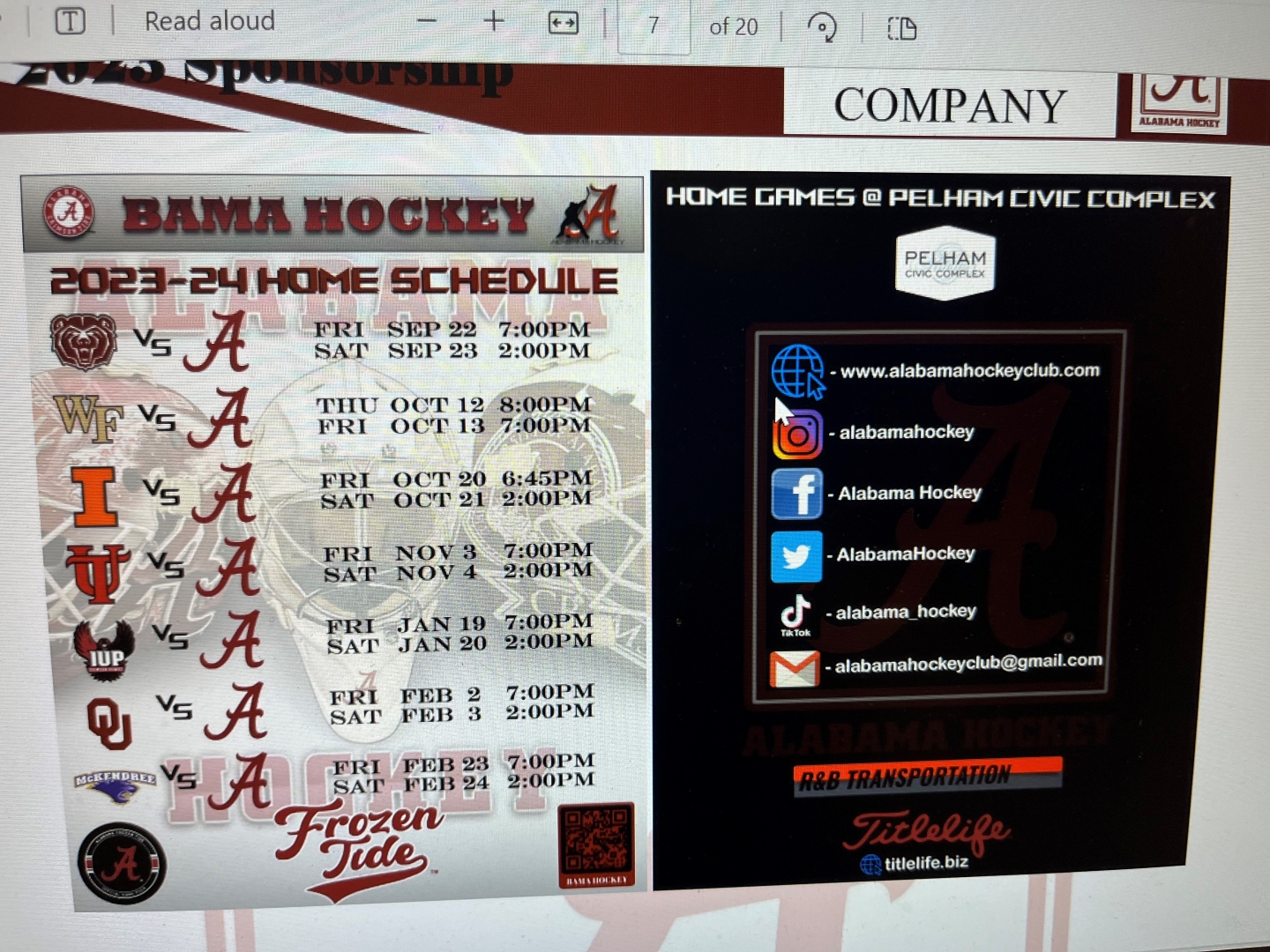 Alabama Hockey D1 Club Team